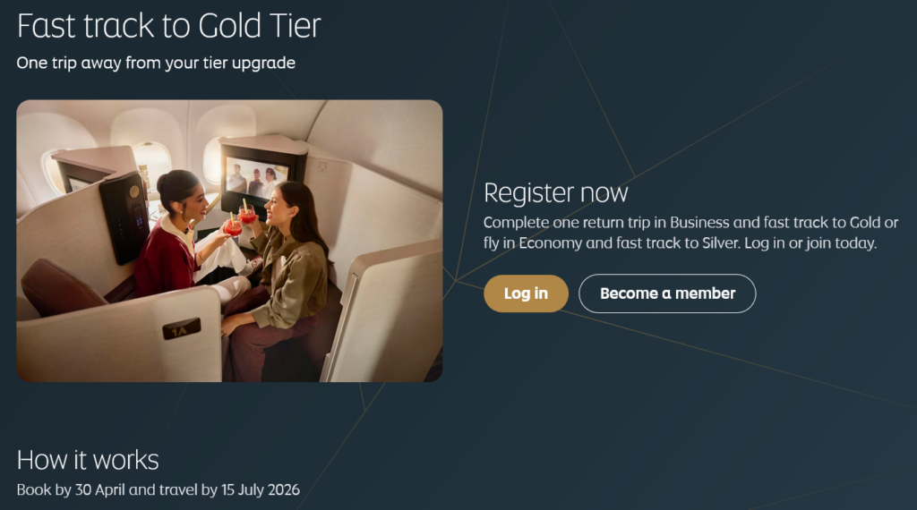 • Eine qualifizierende Reise in der Business- oder First Class führt zum Gold Status